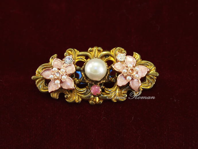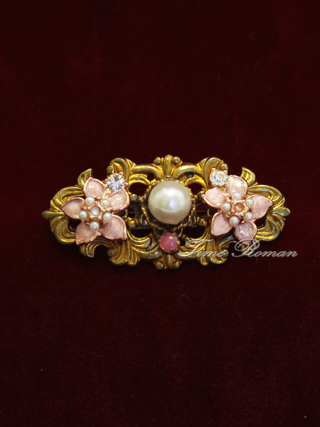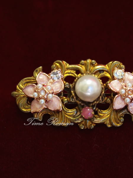 ピンクのお花のモチーフがかわいらしいブローチです。