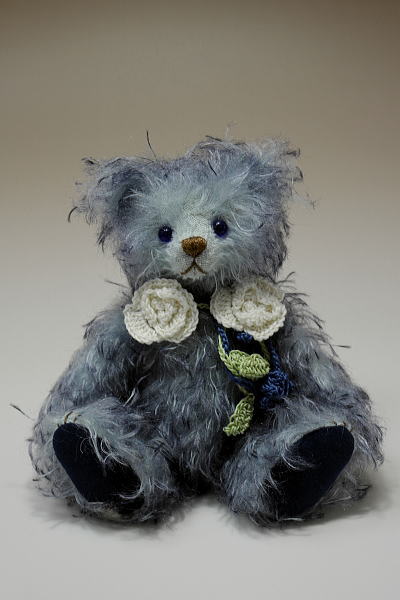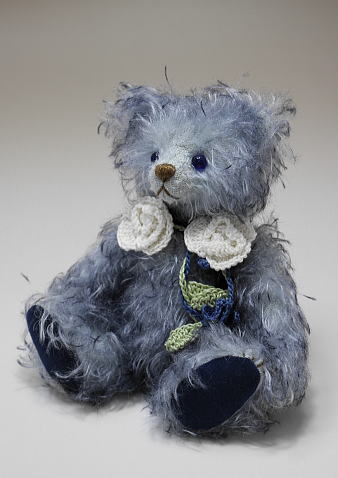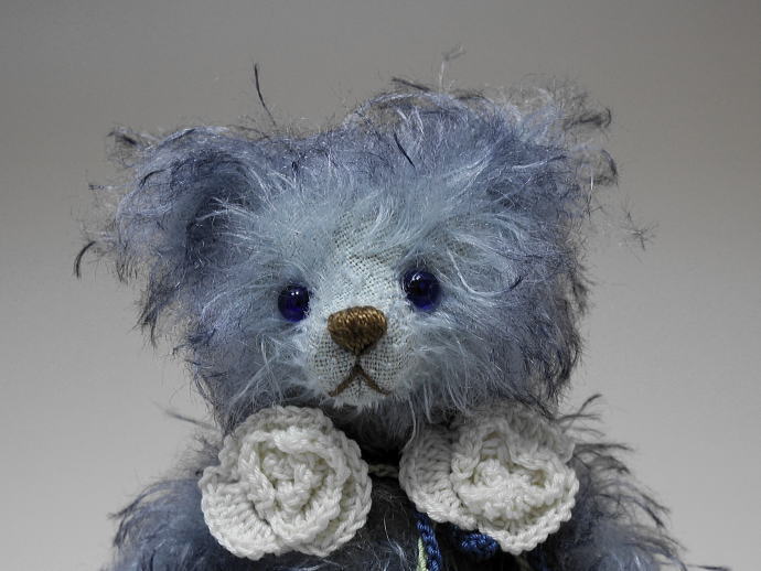 テディベア&アニマル・アーティスト「Papi's Bear/田川 敏美」さま作のテディベア「ラティニティチップド(ブルー)」。