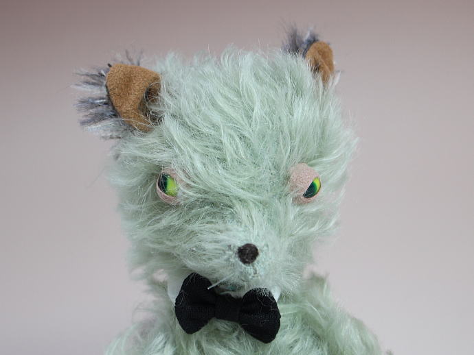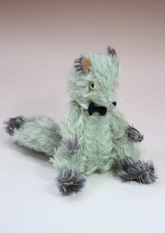 カーリーモヘア、ミックスモヘア(手足の先、耳としっぽの先)、綿、グラスペレット使用。