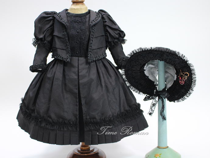 トップ > ドール関連品 I > 約48cm〜55cm位 ドールサイズ用 ワンピース&ジャケット&ボンネット 作家もの シルク