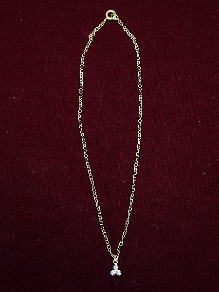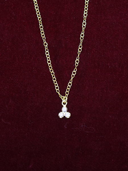 金色のチェーンに三つのラインストーンがモチーフのネックレスです。