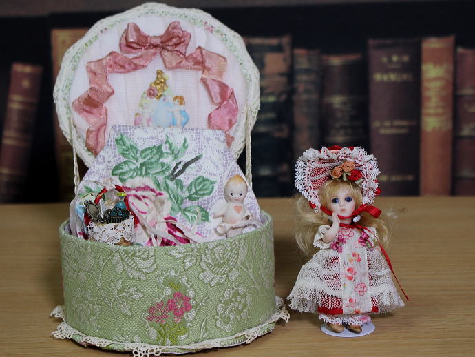 ブリュちゃんのおめかし道具が入った籠とキューピー(ビスク)が付属です。
