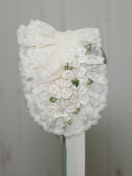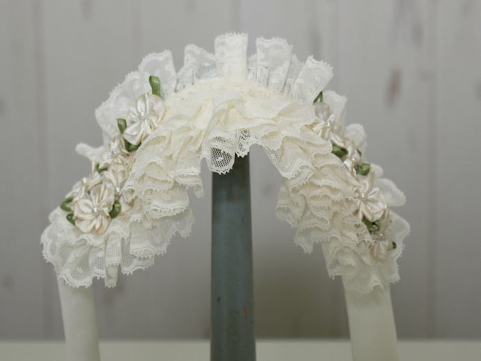 左右にあしらわれたフラワーモチーフが可憐な雰囲気のヘッドドレスです。