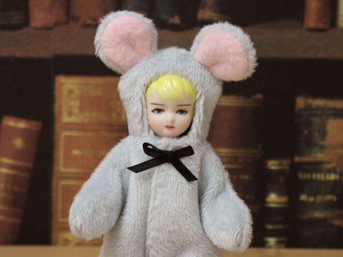 可愛らしいねずみスーツを纏っております。