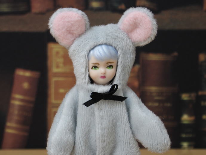 可愛らしいねずみスーツを纏っております。