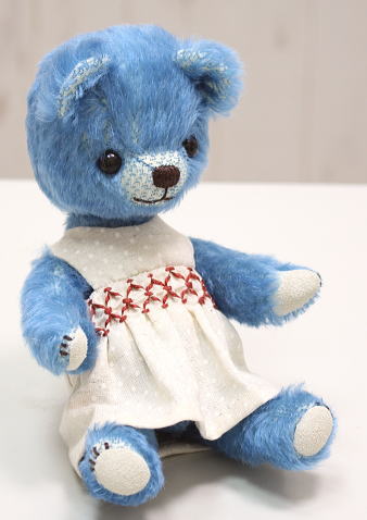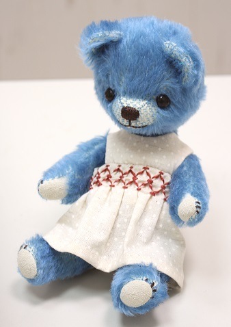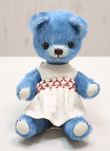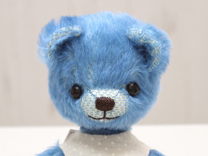 テディベア&アニマル・アーティスト「hanahana/松原美香」さま作のテディベア『 no.185 テディベアブルー』。