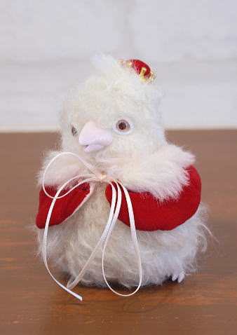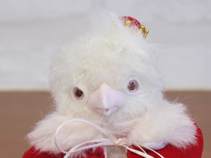 頭に王冠、赤いケープは、白カラスさんに大変良く似合っております。
