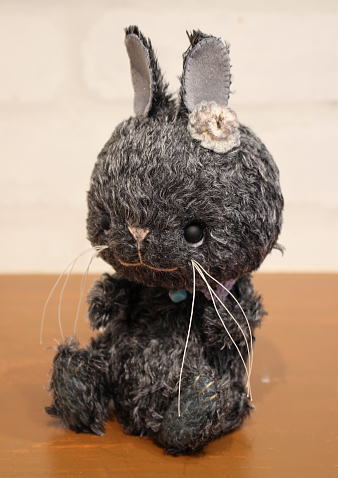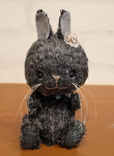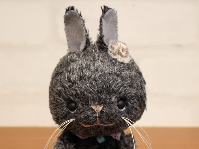 テディベア・アーティスト「Sharon&Bear+Emimal/えっちゅう えみ」さま作のテディベア『うさぎの ぼこぼこちゃん』。