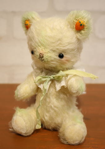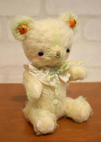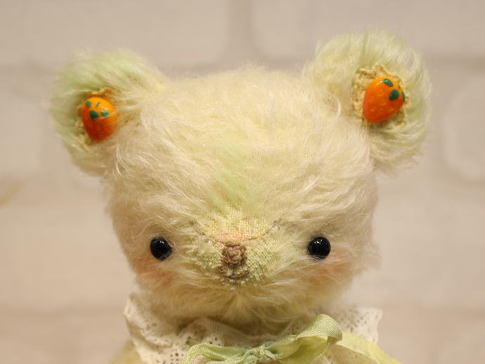 白と淡いグリーン色の光沢のある毛並みに、きらきら輝く瞳が愛らしいベアちゃんです♪