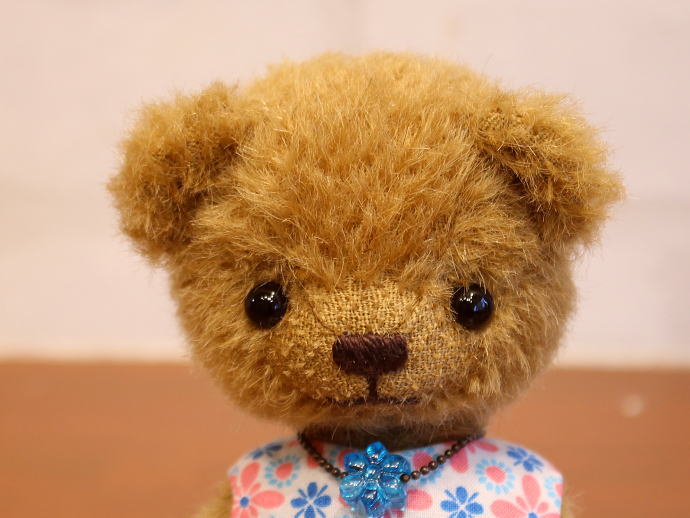 テディベア&アニマル・アーティスト「hanahana/松原美香」さま作のテディベア『no.210テディベア(青のペンダント)』。