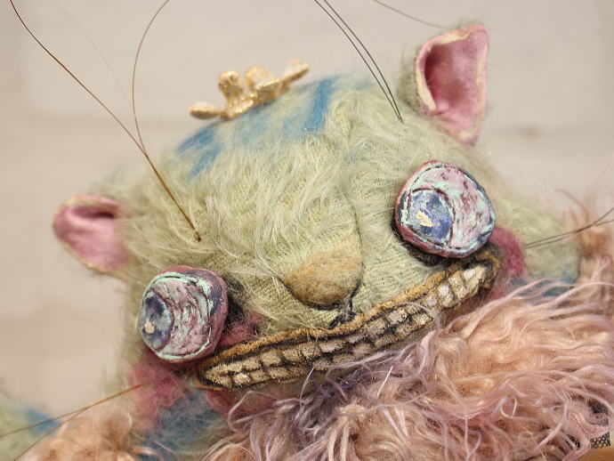 個性的でアンティークライクなベアやアニマルを作られている、テディベア・アーティスト 「HISA KATO」さま作 【「Cheshire cat」 title:『王様気どりのチェシャー猫』2022,Ver (ダークファンタジー) Special i - H i - H i 瓠曄