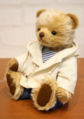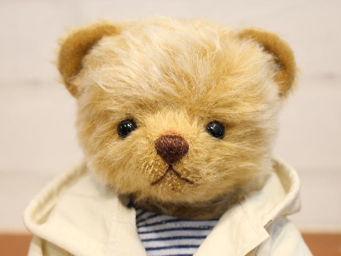 淡いベージュ色のパーカーと縞模様のTシャツはベアちゃんに大変にあっております。