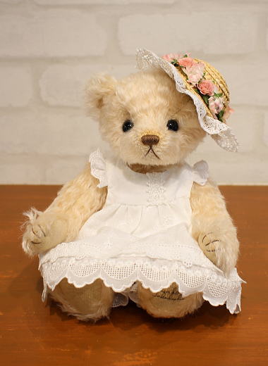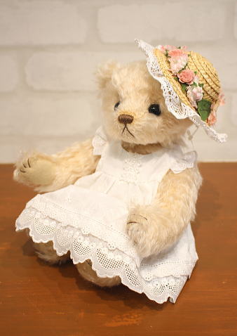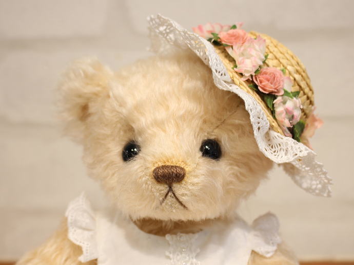 テディベア&アニマル・アーティスト「T`s Pocket」さま作のテディベア【マリィ】。 ウェービーモヘア(ベージュ)を使用。 目は、グラスアイ。 手のひら&足裏:スエード。 その他:綿、グラスビーズ、ワンピース、パンツ、麦わら帽子。 身長:約26僉 色とりどりのお花がついた麦わら帽子に、白いワンピースが大変よく似合う素敵なマリィちゃんです♪ きらきら輝く優しい瞳を持つベアちゃんです。 優しい瞳でこちらを見つめてくださいます。 きらきらとした瞳で見つめられると、思わず笑みがこぼれちゃうほどです。 可憐な素敵な子です♪ 【必ずご確認くださいませ】 −−−−−−−−−−−− 店頭と通信販売と同時に販売いたします為、店頭優先となりますので、予めご了承くださいませ。 何卒、ご協力くださいますようお願い申し上げます。 展示の様子を動画(インスタ・ツイッター)で、ご覧いただけます様、ご紹介して参ります。 ※先着順ですので、もし先に決済まで済まされたお客様がいらっしゃると エラーとなる場合もございます。その際は悪しからずご了承くださいませ。 ※ご注文は、買い物カートのみでお願いいたします。 4/30日の間の電話やメールでの受付は行っておりませんので、予めご了承ください。 気になられます作家様や作品がございましら、お気軽にお問合せください。 ※但し、会期期間中は、ホームページ(ショッピングサイトやブログ)などには 個々の作品の掲載・ご紹介は行っておりません(掲載はスナップ写真・集合写真となります) その旨何卒ご了承ください。 ※作品ご購入決定後のキャンセルはお受けいたしかねますので、予めご了承ください。