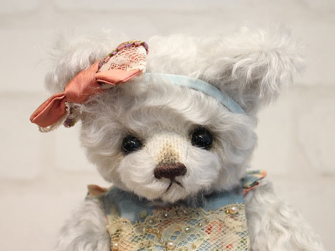 光沢のある淡いブルーグレーの美しい毛並みに、キラッと輝く瞳の愛らしいベアちゃんです♪