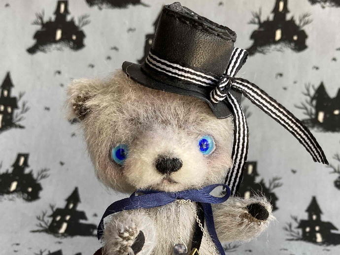 ゴシック系のおしゃれな帽子とバッグを持ったおしゃれなベアちゃんです♪