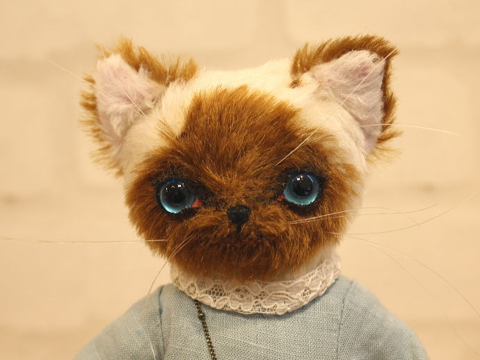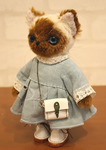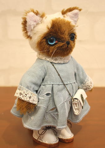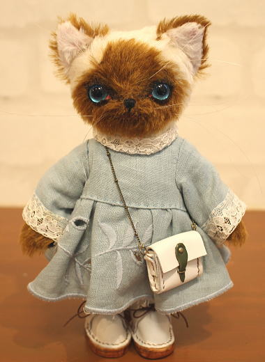 テディベア・アーティスト「ジェリーベア」さま作のテディキャット『シャムにゃんお出かけ』。