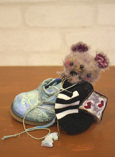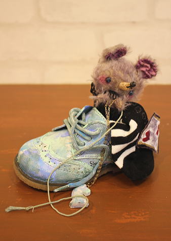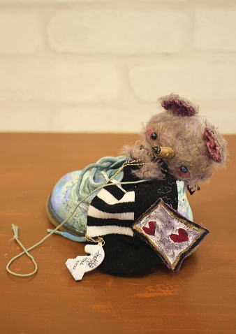 個性的でアンティークライクなベアやアニマルを作られている、テディベア・アーティスト 「加藤日砂」さま作【Shoes in 眠りねずみ】。