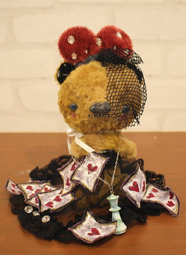 個性的でアンティークライクなベアやアニマルを作られている、テディベア・アーティスト 「加藤日砂」さま作 【ハートの女王ANGEL】。