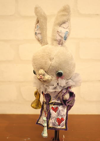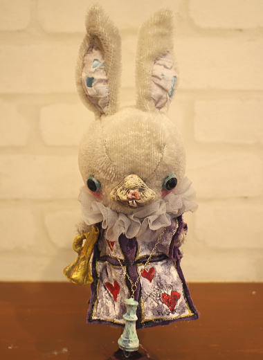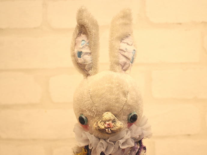 個性的でアンティークライクなベアやアニマルを作られている、テディベア・アーティスト 「加藤日砂」さま作 【主役級の白うさぎ】。