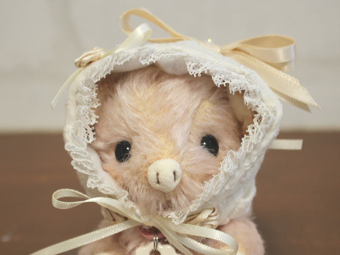 ≪終了企画≫ > 《終了》◆第1回 藤野美術館◆テディベア リボン展◆3/11(土)〜3/19(日) > otd Karen bear / 【No.1811 リボン帽子のぶたさん】