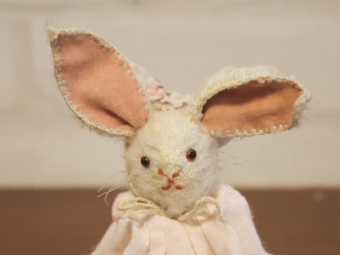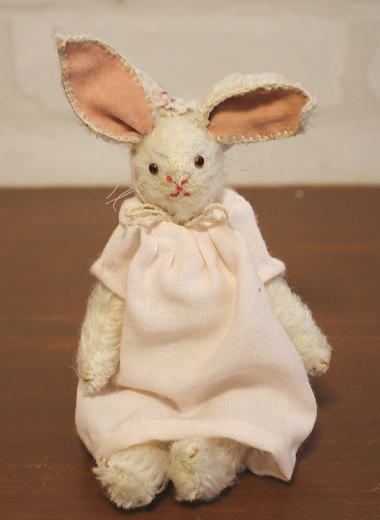 テディベア&アニマル・アーティスト「Reiko Ikehata/池畑玲子」さま作の 【リボンボンネットのラビット】。