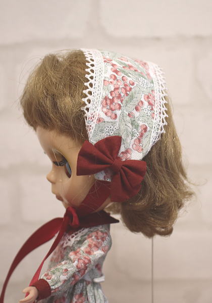 ビクトリア柄の可憐なワンピースとボンネットです。