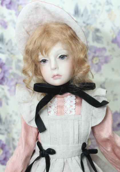 クラシカルなエプロンドレスに、ナチュラルテイストな生地を使用したドレスが大変よく似合っております。