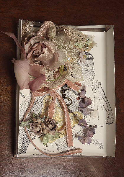 素材:ベルベッド、シルク、綿、アンティークレース、スパンコール、ガラス、ビーズ、パール、