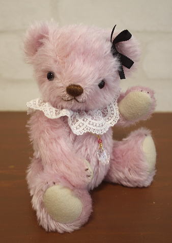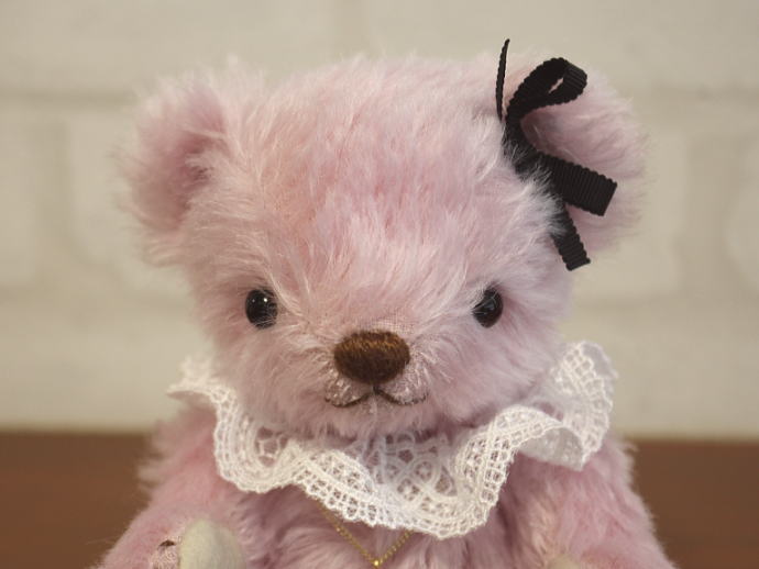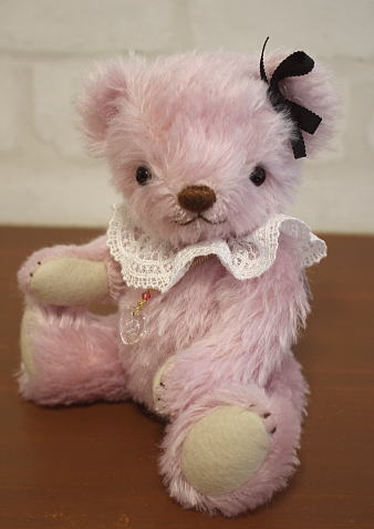 しあわせ感いっぱい、華やかなピンク色のテディベア【チェリー】ちゃん。