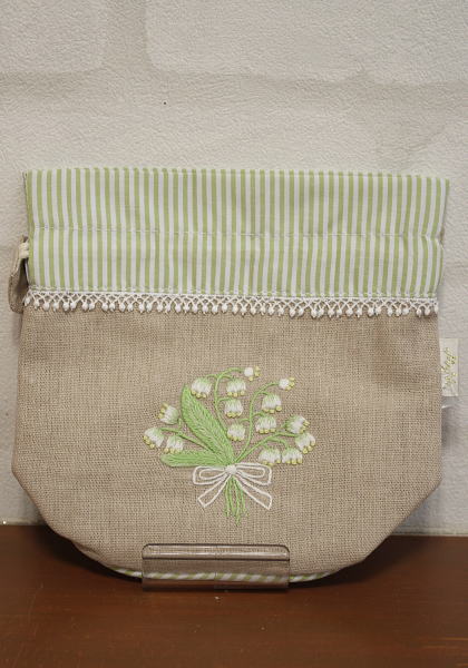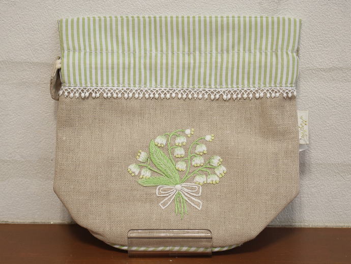 手刺繍 ミニバレル巾着 可憐