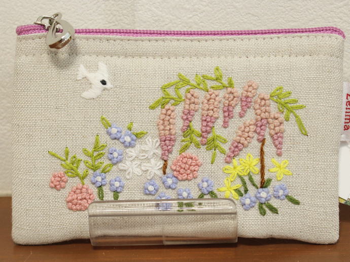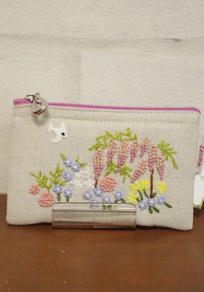 雑貨関連 > バッグ・ポーチ・スマホケース > 手刺繍 雑貨 > 手刺繍 ミニポーチ 春ガーデン