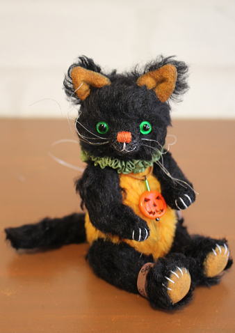 テディベア&アニマルたちを作られている、テディベア・アーティスト「N.P. Bear Studio」さま作の【Vintage Halloween Kitty】。