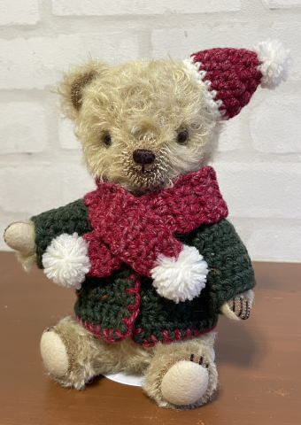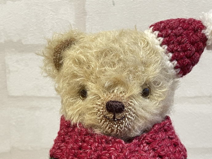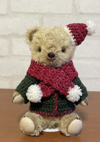 素材:カールモヘア(シュタイフシュルテ社製)。 目は、グラスアイ。 その他:フェルト、化繊綿、ガラスペレット、ハードボード5ジョイント。 サイズ:約21cm。 【作家様よりコメント】 冬の装いのクマさんです。 サンタさんのような手編みのニット帽がチャームポイント。 ーーーーーー にこっと微笑んでいる姿が愛らしいクマちゃんです♪ ボンボンの付いた三角帽子と、マフラー・グリーン色のアウターコートで素敵におしゃれ。 赤と緑でクリスマスカラーです。 優しいお顔立ちに癒される素敵な子です。 ーーーーーーーーー ◆お支払い決済が現金払いの場合(銀行振込・郵便振替)は、3%OFFいたします◆ (店頭でも現金の場合)適応いたします! 代引きは対象外です。 ※パソコンモニター及びお使いの端末、タブレット(モニター環境等により)、 実物と若干お色目が違って見える場合がござます。予めご了承くださいませ。 【タイムロマンからのお願い】 ※作品ご購入後のキャンセル、変更はお受けいたしかねますので、予めご了承ください。 ※転売目的/営利目的等でのご購入はお断りしております。