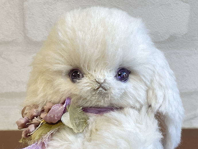 透明感のある紫の瞳が星のように煌めいております 愛らしい雪うさぎさんです。