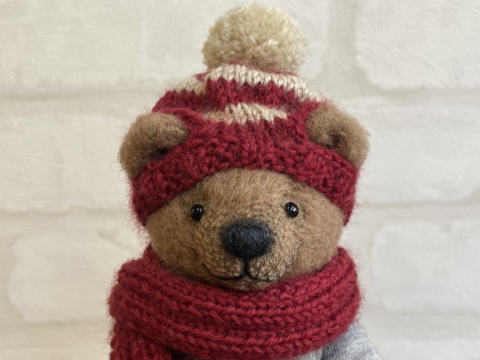 テディベア・アーティスト「nfb」さま作の 【ニット帽 マフラーの子】
