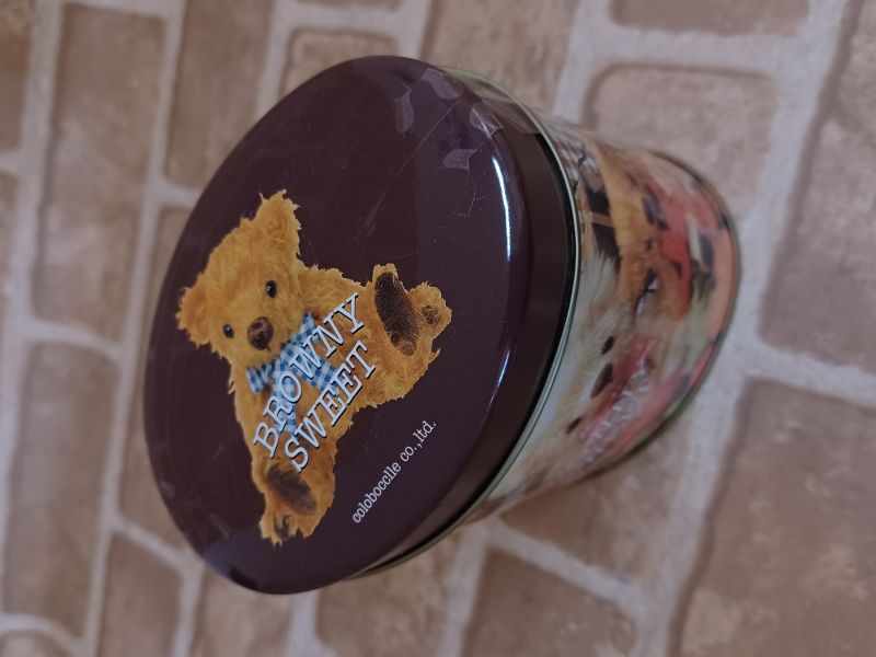 ふんわりとした可愛らしいくまさんの絵柄が可愛いクッキー缶です。