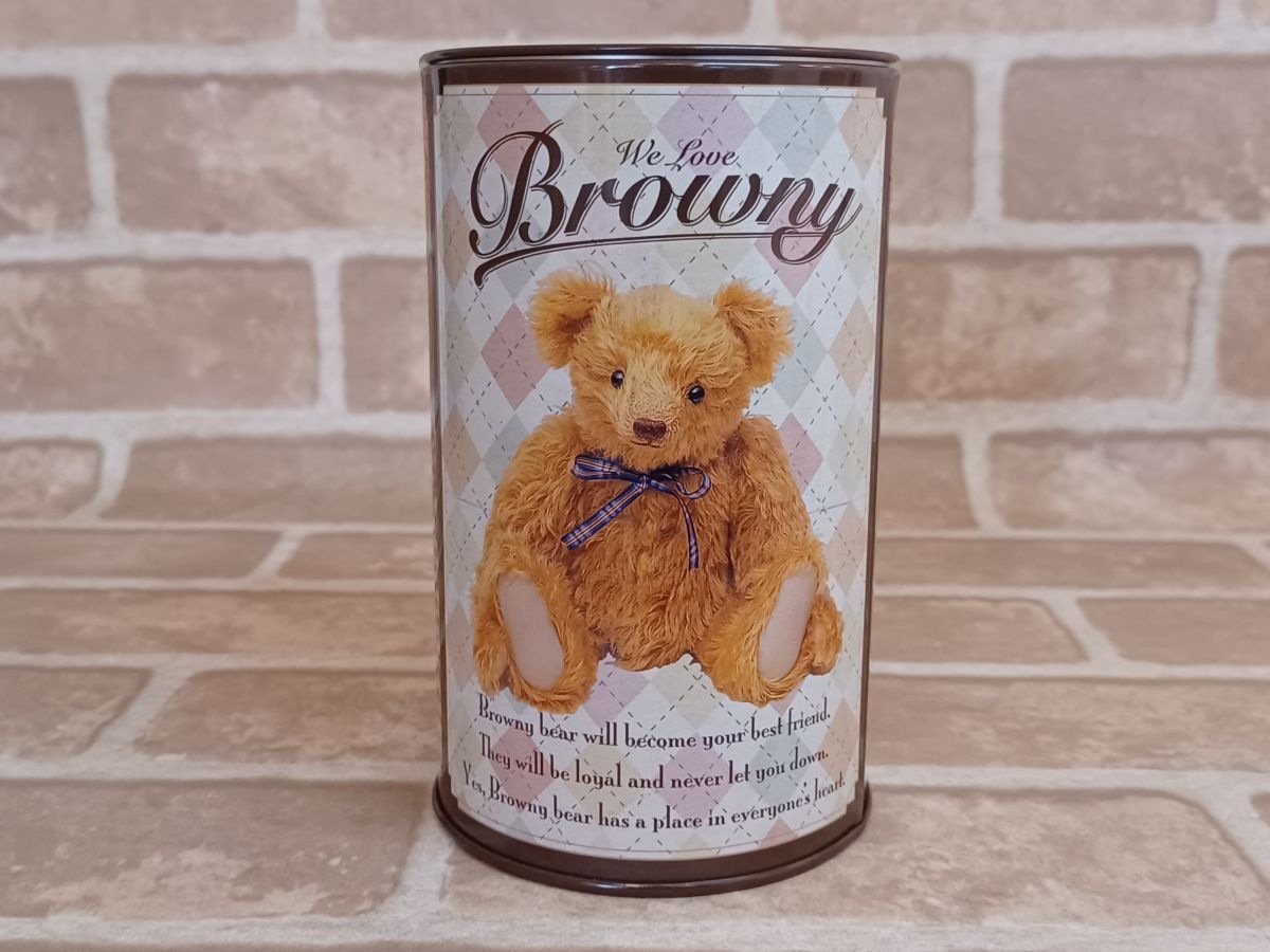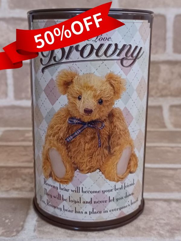 テディベア クッキー缶 ブラウニー ラウンドバンク型 茶色缶(チョコ味) 《特別価格50%OFF》