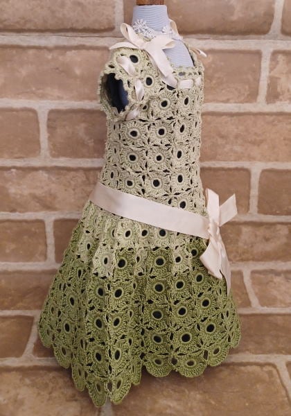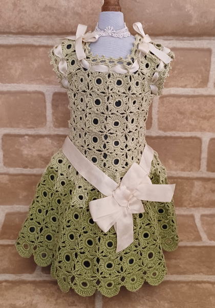 ★海外より取り寄せたアンティークのクロシェットドレスを思考錯誤しつつ摸倣して編んだワンピースドレスです。