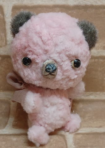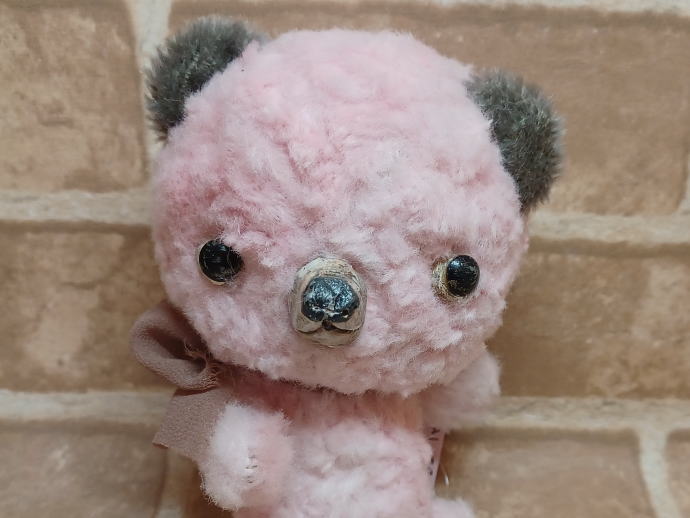 コロンとしたフォルムに、ふんわりとした手染めの、淡いピンク色の毛色が可愛らしいベアちゃんです。