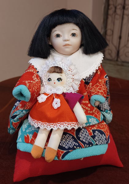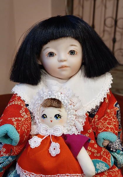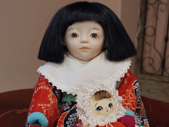 小さなおにんぎょうさんを大事に抱っこをしてこちらを見つめる姿はなんとも愛らしく、