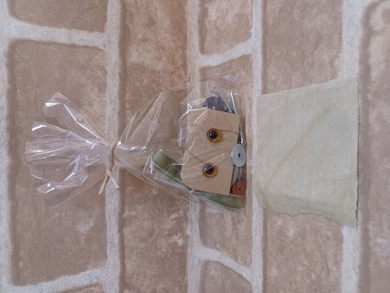 ジョイント、目玉パーツ&別珍生地、リボン、型紙、説明書セットとなっております。
