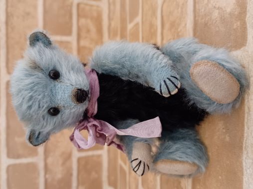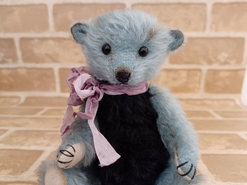 落ち着いたブルーと黒色のコントラストが美しい毛色とくりくりとしたまっ黒な瞳が愛らしいベアちゃんです。