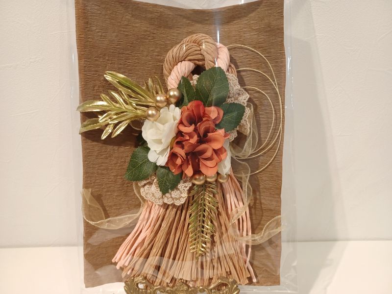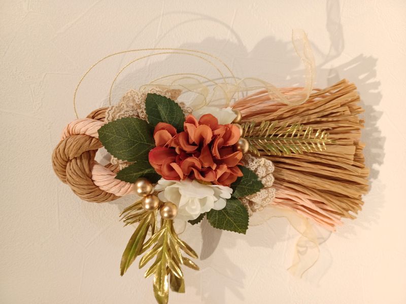 ナチュラルな風合いをもつ造花を使用した和と洋を取り入れたしめ縄リースです。