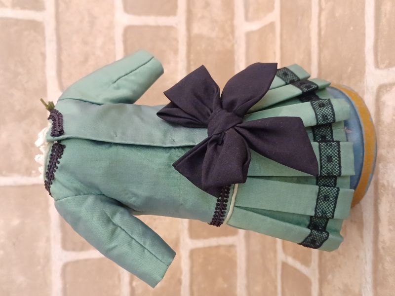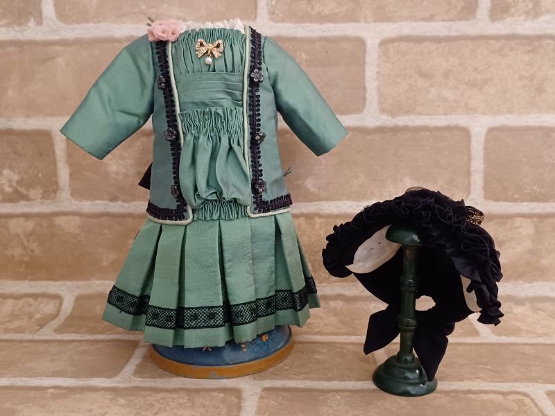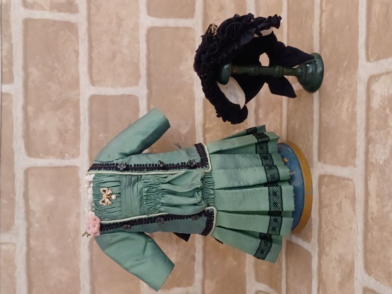 全体を引き締める、繊細でシックなお花の装飾が映える、黒のボンネットとの相性がぴったりな、ドレスセットです。