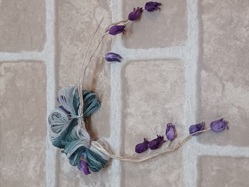 左右に小さなベルテッセンのような可愛い紫色の小花をランダムにデザインしました。