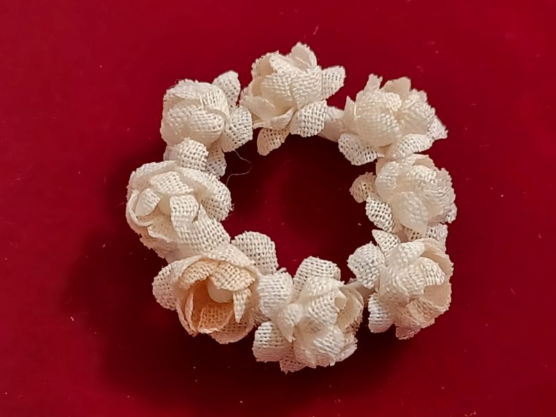 1枚1枚染めた花弁をコテ当てして仕上げた、アンティークテイストのミニミニリースです。