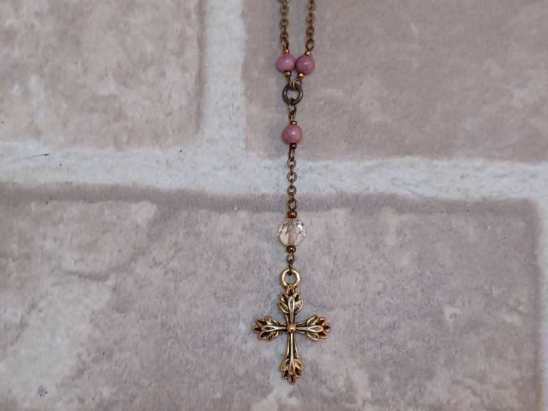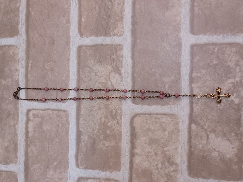 天然石のローズナイトを使用したネックレスです。