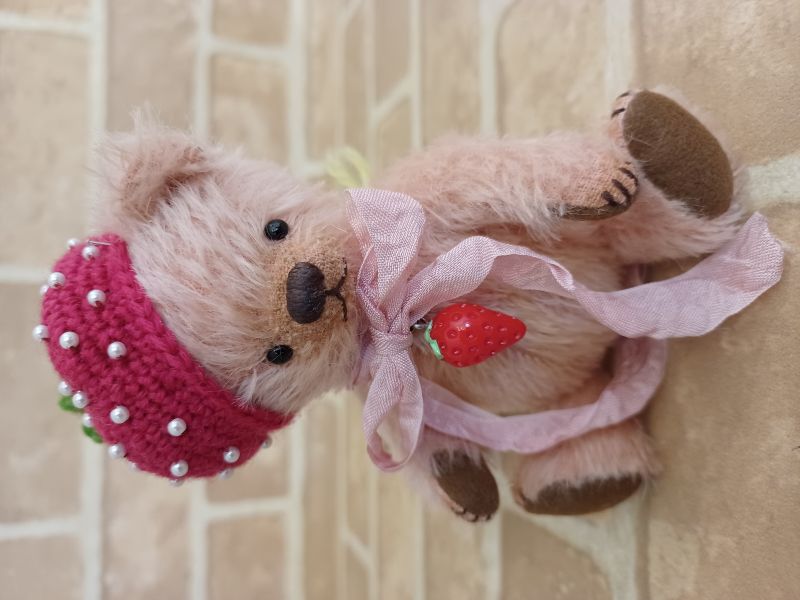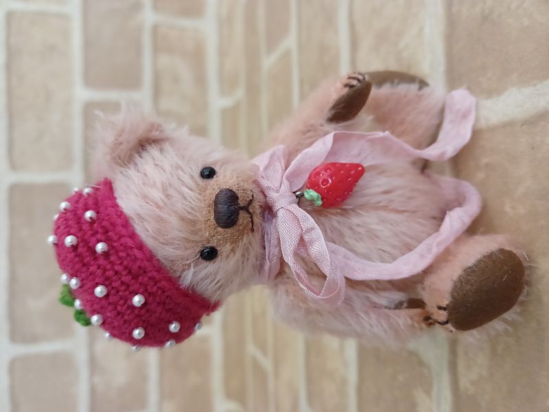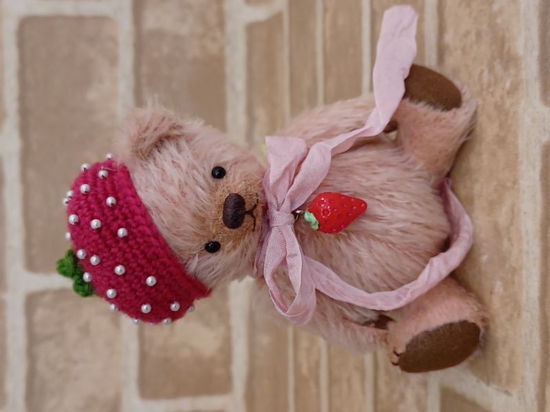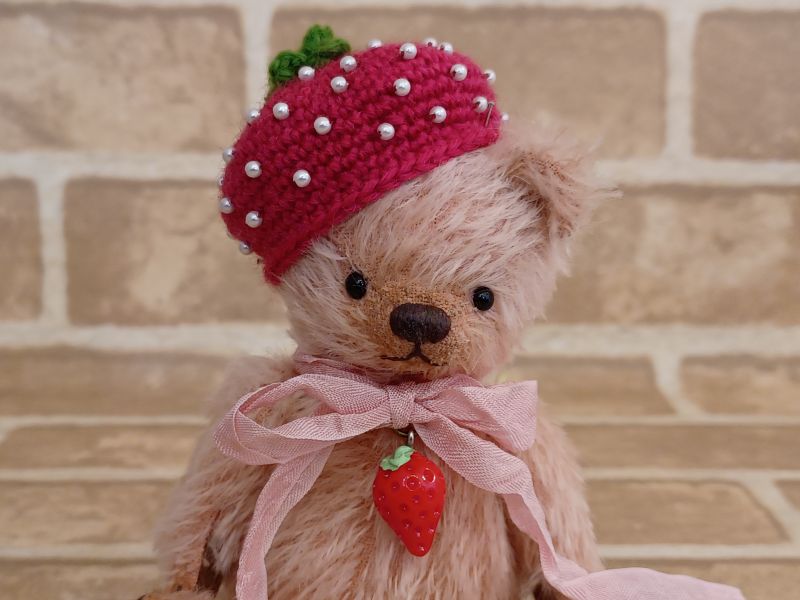 テディベア&アニマル・アーティスト「Mugikuma」さま作の【いちごの帽子】