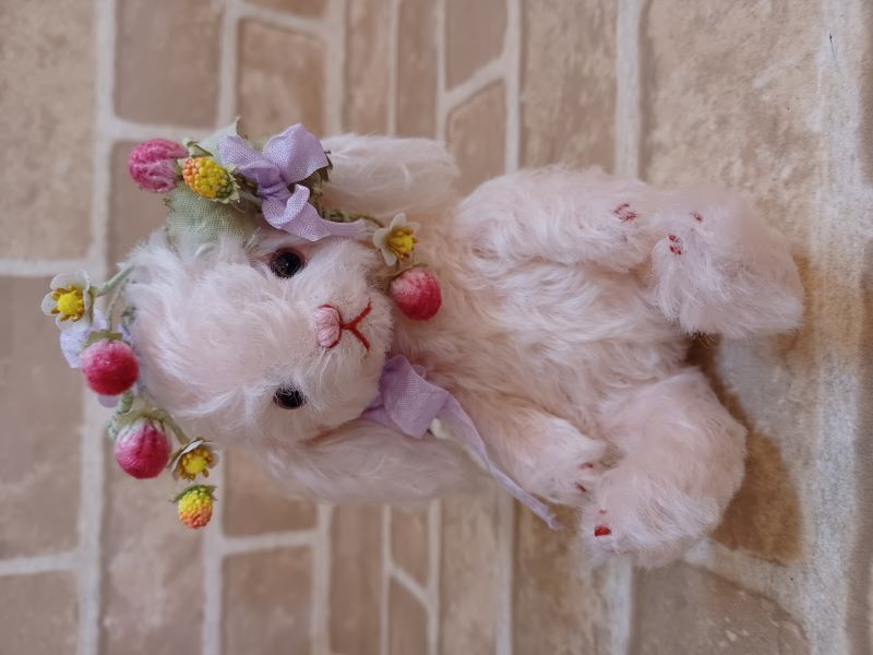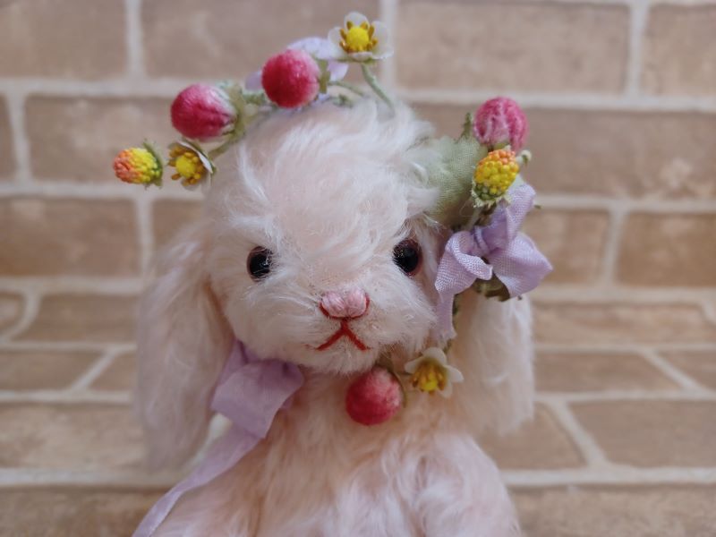野いちごが付いたヘッドドレスが、うさぎちゃんに大変良く似合っております。