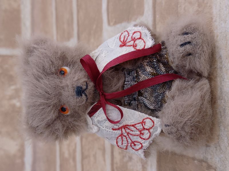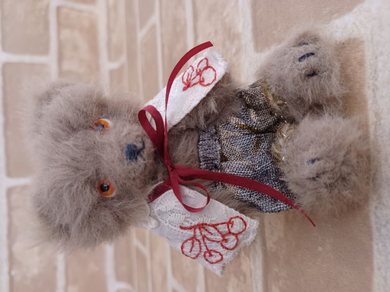 テディベア&アニマル・アーティスト「Nana〜Avery merry unbirthday to you〜」作の 【さくらんぼ刺しゅうケープの男の子】